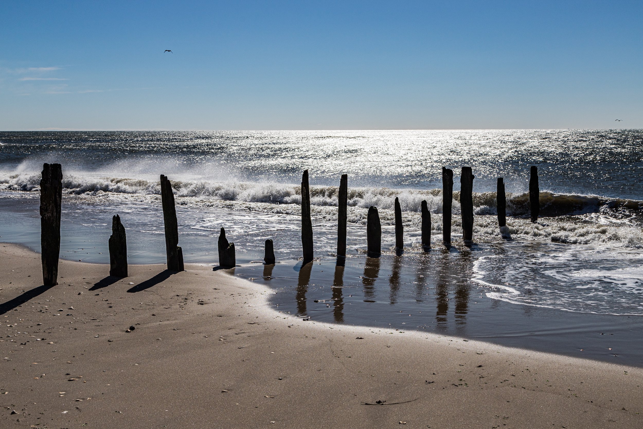 Here, the geography tells the story: barrier dunes shaped by Atlantic winds, tidal wetlands along the bay, and a shoreline that alternates between wild serenity and structured recreation. Riis Park’s bathing beaches and Art Deco bathhouse open onto wide sandy expanses, while Fort Tilden’s overgrown bunkers and artillery batteries rest quietly beneath maritime forest, their concrete softened by decades of salt and sun.