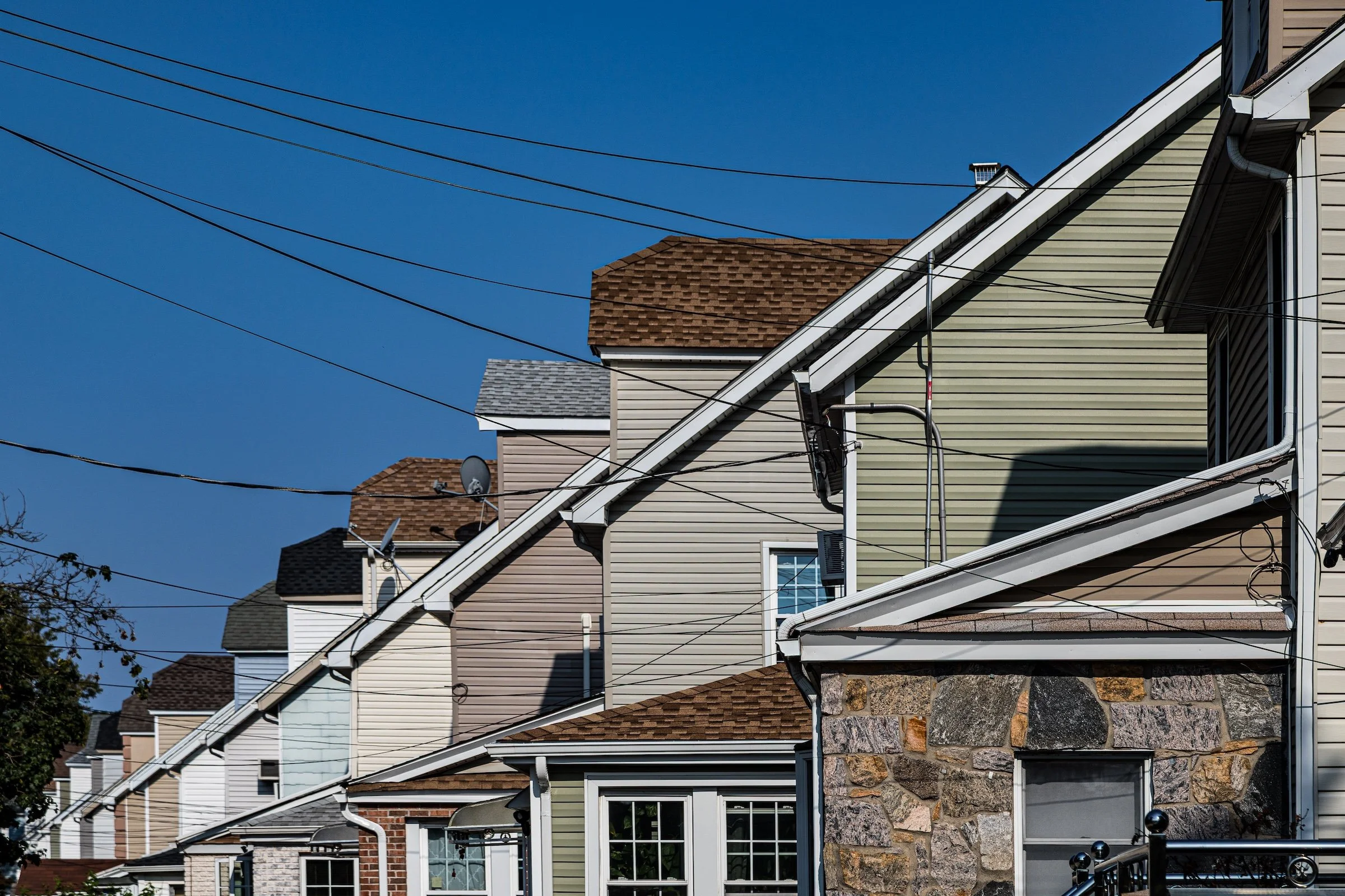 A quieter rhythm, but extremely satisfying: repetition expressed through order, symmetry, and matched elements. The frame reads like a composed diagram of suburban calm—pattern as precision.